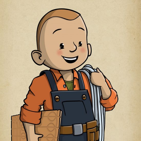 Sympathische Figuren erklären das Berufsbild des Gerüstbauers